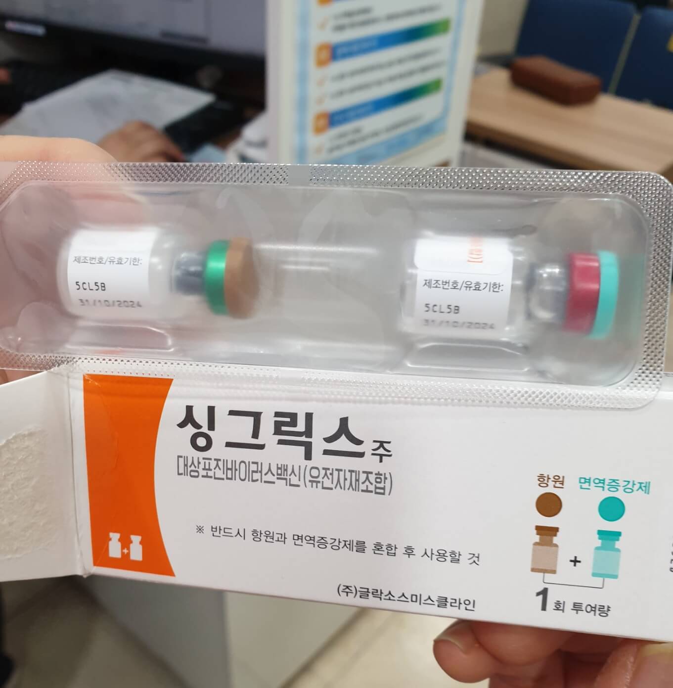 자료를 찾아보니 싱그릭스와 조스타박스 두 종류가 있었는데, 요즘은 생백신보다는 사백신이 더 안전하고 효과도 좋다는 내용을 본 뒤 가격이 다소 부담스럽긴 하지만 싱그릭스를 맞기로 결심했습니다.