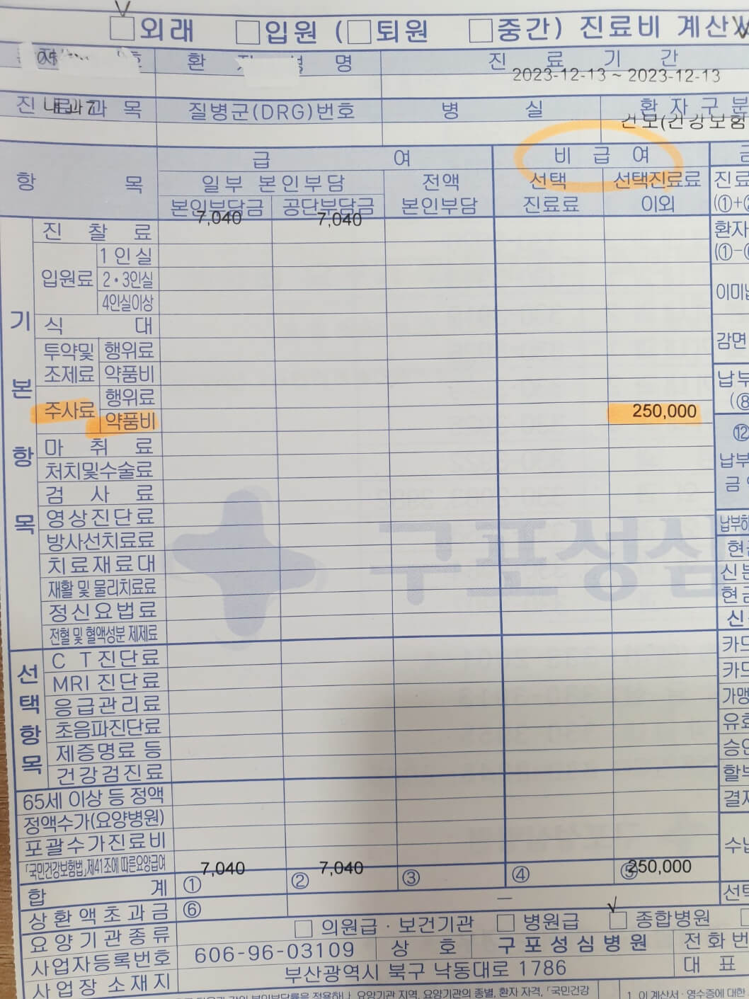 비급여로 1회당 주사 비용은 25만 원이었고 다음 접종은 3개월 뒤에 하도록 설명 들었습니다. 통상 2~6개월 뒤에 하도록 하고 있으며 보통 2~3개월 후에 하는 것을 권장한다고 하셨습니다.