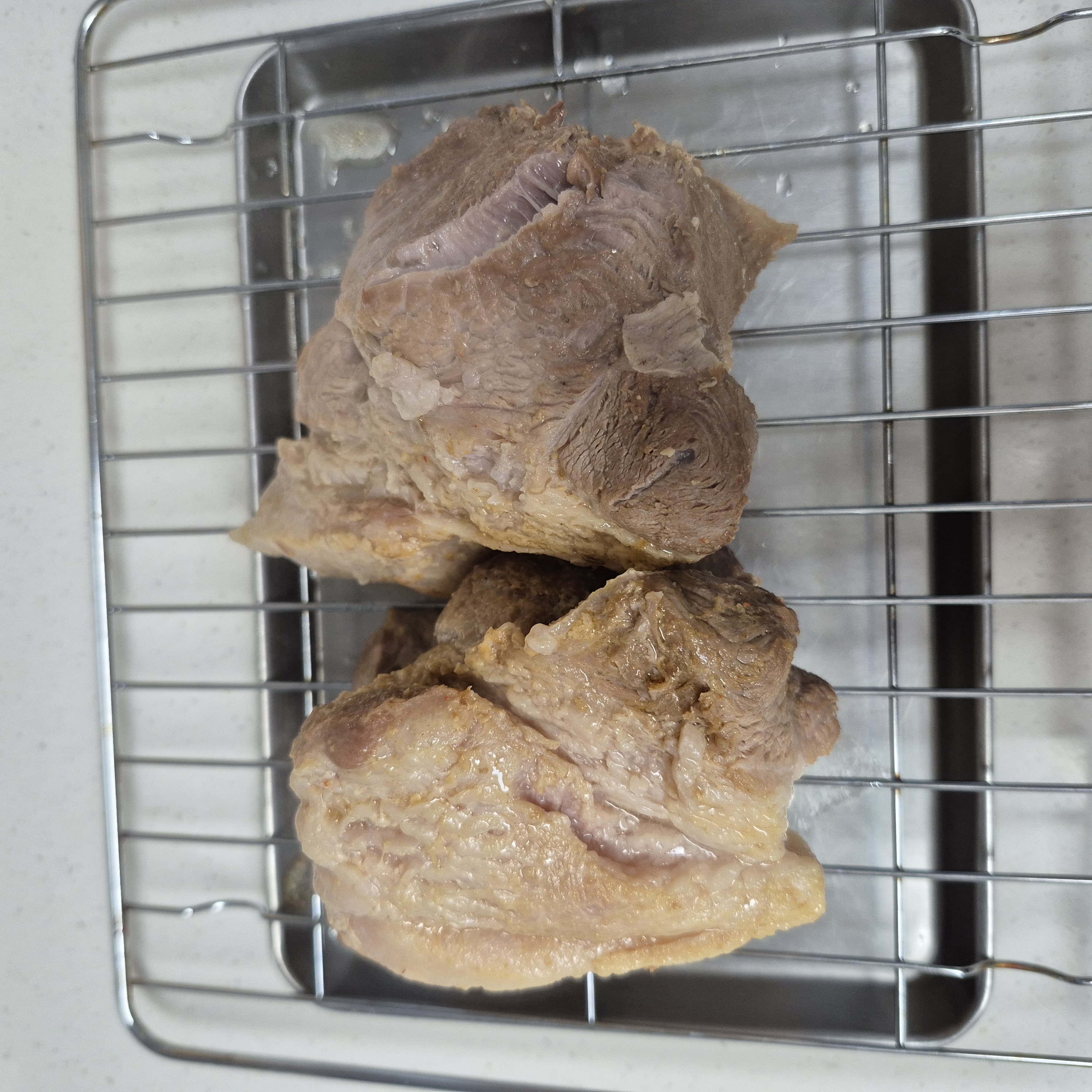 그래야 육즙이 잘 보존되어 더 맛있는 수육을 먹을 수 있습니다.