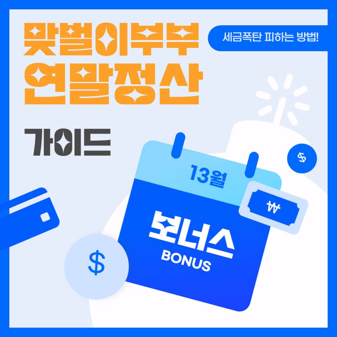 연말 정산 시즌이 다가옴에 따라 맞벌이 부부의 연말정산에 대해 궁금점이 많아지는 시기입니다. 그래서 오늘은 저를 포함한 맞벌이 부부의 13번째 월급인 연말정산에 대해 알아보도록 하겠습니다.
