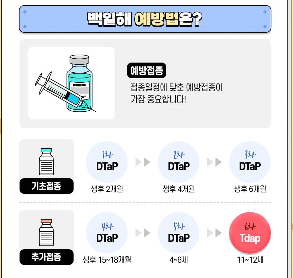 ->만 11~12세에 Tdap 백신으로 추가 접종합니다.