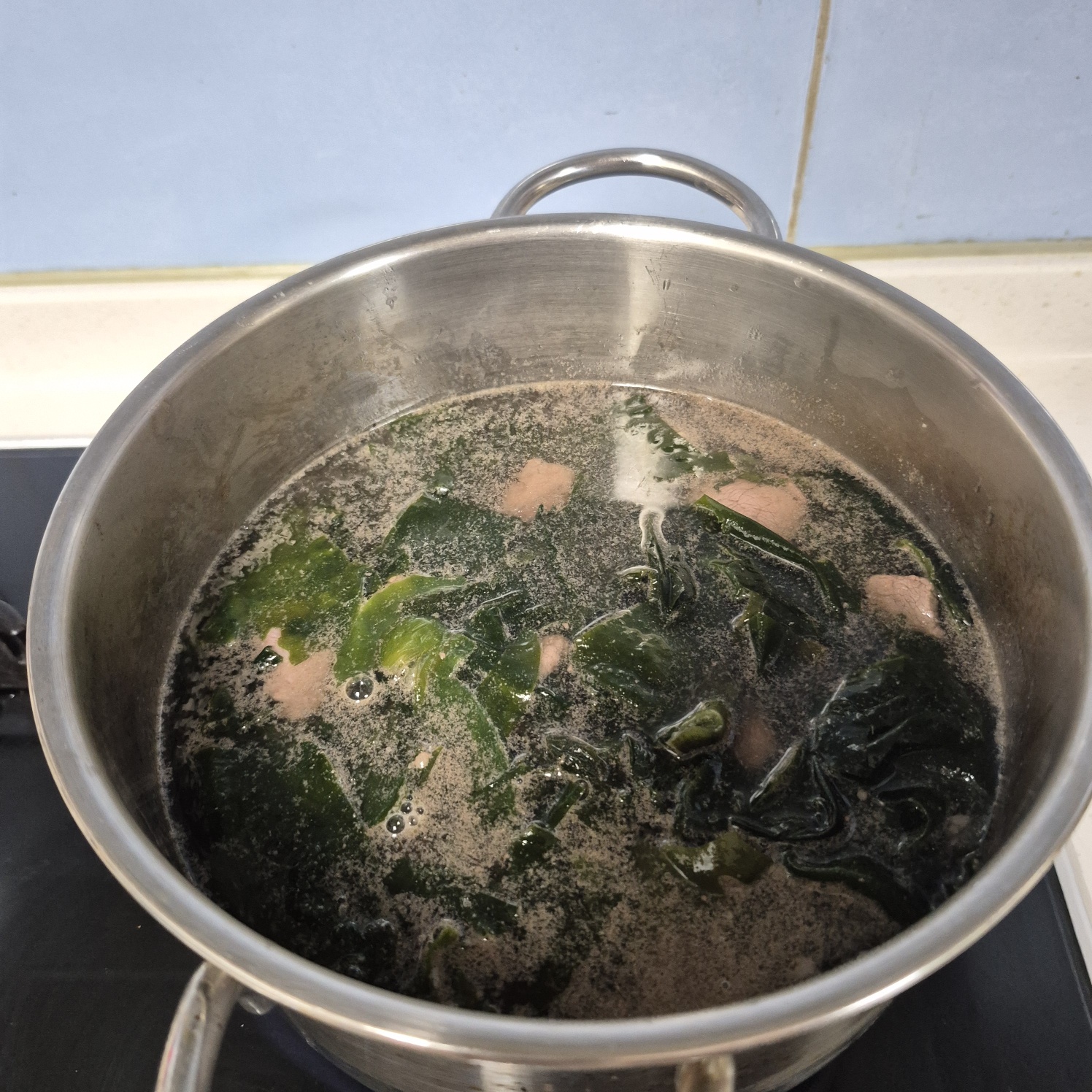 - 불을 약불로 낮추어 50분에서 1시간 정도 미역국을 푹 고아 줍니다