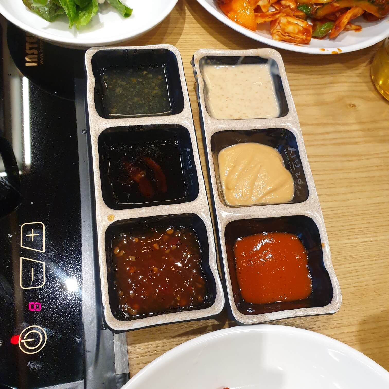 각종 소스류들을 담아왔습니다. 갠적으로 땅콩 소스 좋았습니다.