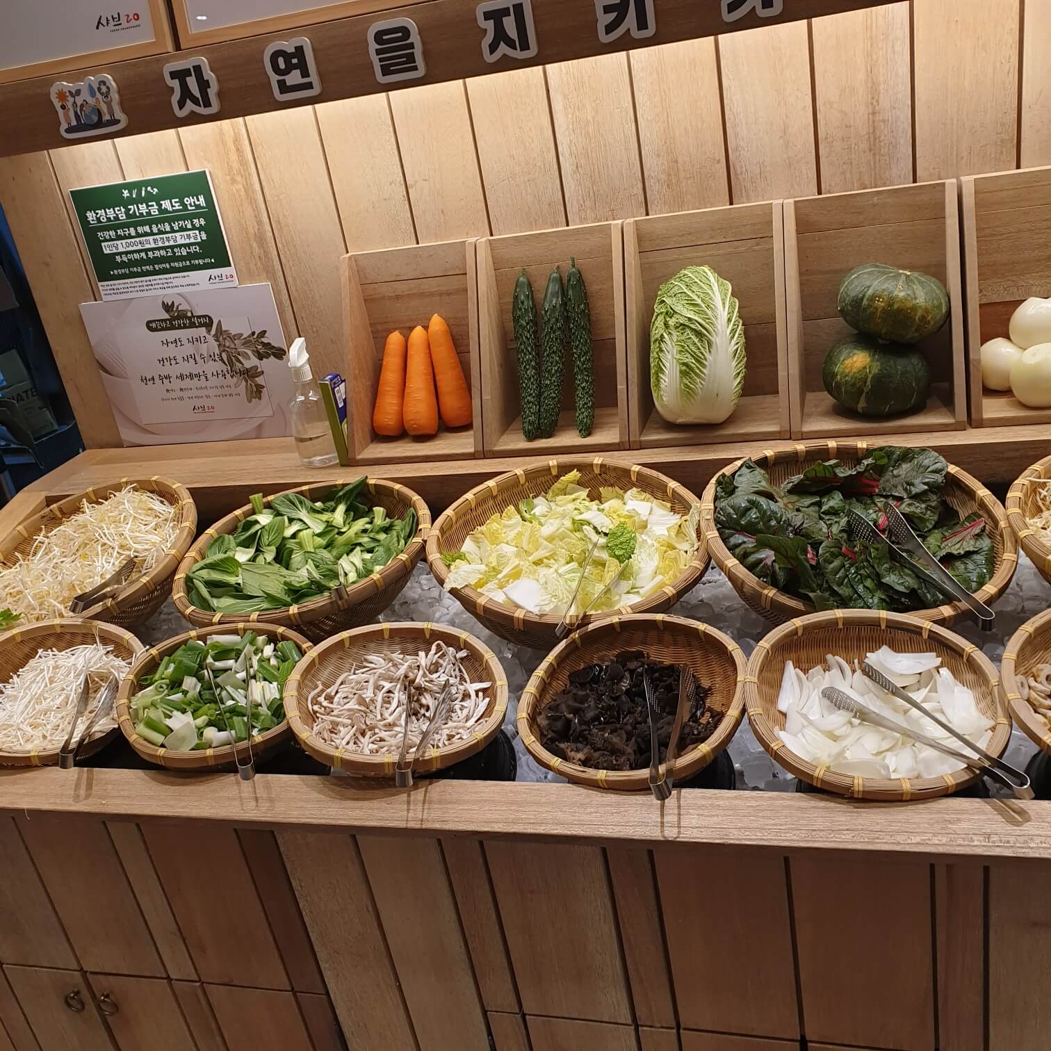 출입 즉시 보이는 계산대와 그 너머로 보이는 신선한 야채들이 저를 반겨 주었습니다.