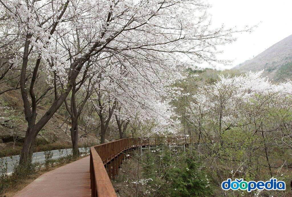 도로를 따라 나무바닥(데크) 산책로가 조성되었고 산책로 곳곳에 벤치와 정자가 설치되어 있어 쉬어가면서 천천히 봄을 만끽할 수 있는 아름다운 길이며, 차로 드라이브할 경우에는 중간중간 주차할 수 있는 공간이 있어 주차한 후 가볍게 산책하기에도 좋은 곳입니다.